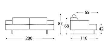 Divano modulare a due posti con o senza chaise longue e schienale regolabile. Il profilo del divano è rifinito con eleganti cuciture artigianali che ne esaltano le forme. Ma l'elemento che cattura l'attenzione sono le gambe dal design sospeso tra il rigore del metallo e il colore scuro a contrasto, e la leggerezza del design strutturale. I morbidi cuscini amplificano il comfort.