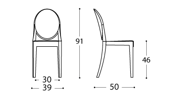 Una sedia dalla linea classica, con uno schienale arrotondato che richiama la forma di antichi medaglioni, mentre la seduta è lineare e geometrica. Victoria Ghost è disponibile in policarbonato trasparente o colorato ed è realizzata in un unico stampo a iniezione. È stabile e robusta, antiurto e in grado di resistere agli agenti atmosferici. Un prodotto dal grande carisma, con una personalità tutta sua, un'aggiunta elegante e versatile a qualsiasi ambiente.