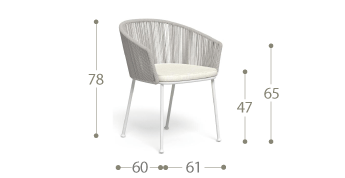 L'ampia e comoda seduta della sedia da pranzo Coral, abbinata a una solida e resistente struttura in alluminio rivestita in corda sintetica, la rende una sedia ideale per completare l'arredo del vostro soggiorno all'aperto.