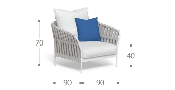 La seduta spaziosa e confortevole della poltrona Living Frame è perfetta per rilassarsi durante un momento di relax. La struttura tubolare in alluminio, con il suo aspetto morbido e sinuoso, si integra perfettamente con la comoda imbottitura e le corde intrecciate su braccioli e schienale, creando un complemento perfetto per uno spazio outdoor voluttuoso e senza tempo. L'accurata selezione di materiali resistenti alle intemperie unisce un design elegante alla praticità richiesta per un arredo da esterno.