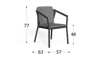 La sedia Nova presenta un design semplice ma elegante, capace di donare freschezza e leggerezza al vostro spazio esterno. Il prodotto è caratterizzato dalla struttura in alluminio verniciato e dallo schienale rivestito in corda. Il rivestimento della seduta è in tessuto con imbottitura in schiuma ad asciugatura rapida, resistente agli agenti atmosferici e ai raggi UV.
