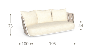 Il divano a due posti Swipe esprime leggerezza e movimento attraverso un design dalla forte personalità. Lo schienale in alluminio, impreziosito da un dinamico intreccio in corda imbottita, abbraccia i generosi cuscini, caratterizzati da linee morbide. Questo elemento d'arredo rende il salotto da esterno confortevole e accogliente, regalando indimenticabili momenti di relax condiviso.