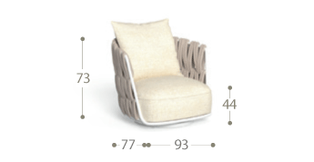 La poltrona girevole Swipe è giocosa e confortevole, perfetta per godersi momenti di relax in giardino. La struttura in alluminio abbraccia la seduta, caratterizzata da un'imbottitura morbida e generosa. Cordini imbottiti si intrecciano con un ritmo geometrico e dinamico attorno al tubolare in alluminio, offrendo maggiore comfort a schienale e braccioli. Una soluzione di design che valorizza la vita all'aria aperta con leggerezza e personalità.