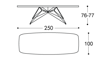 Dimensioni: 250 x 100 cm, H76/77 cm.
