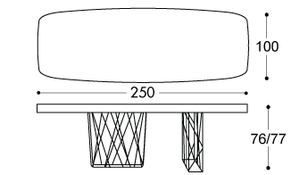 Tavolo fisso Mikado T74, metallo antracite, piano arrotondato, impiallacciato noce Canaletto RV.NC22.
