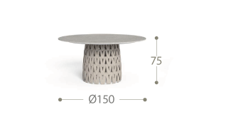 TAVOLO DA PRANZO D150: Dinamismo e movimento sono i concetti che hanno ispirato il design del tavolo da pranzo Swipe. Questo elemento d'arredo dona leggerezza ai momenti di convivialità in giardino, grazie al ritmo geometrico delle corde imbottite che rivestono la struttura tubolare in alluminio. Questo elemento giocoso aggiunge carattere allo spazio living esterno e intrattiene lo sguardo con la sensazione che il sottile piano in gres fluttui.